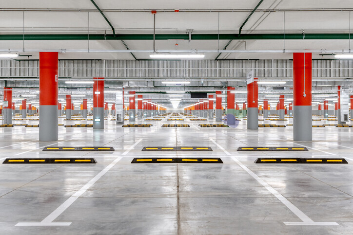 Autoeinstellhallenplatz in modernem Gebäude